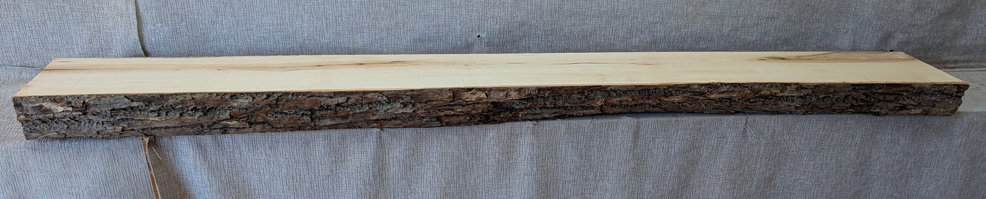 Dark brown thick bark on face that shows machine scars. Light brown and gray color on top and bottom that shows knots and splits.