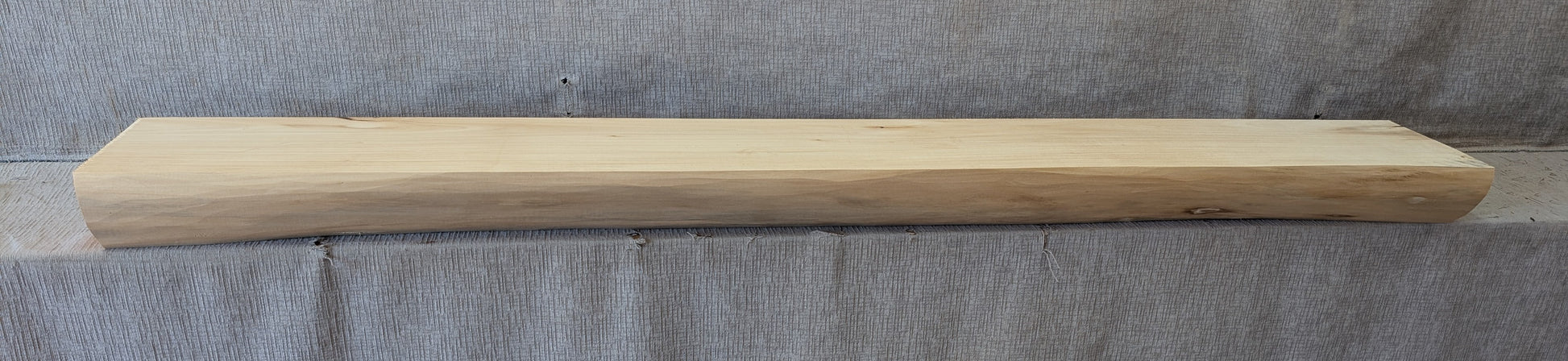 Face shows light brown and gray color on regular shaped face that shows machine scars. Light brown color on top and bottom with knots and splits.