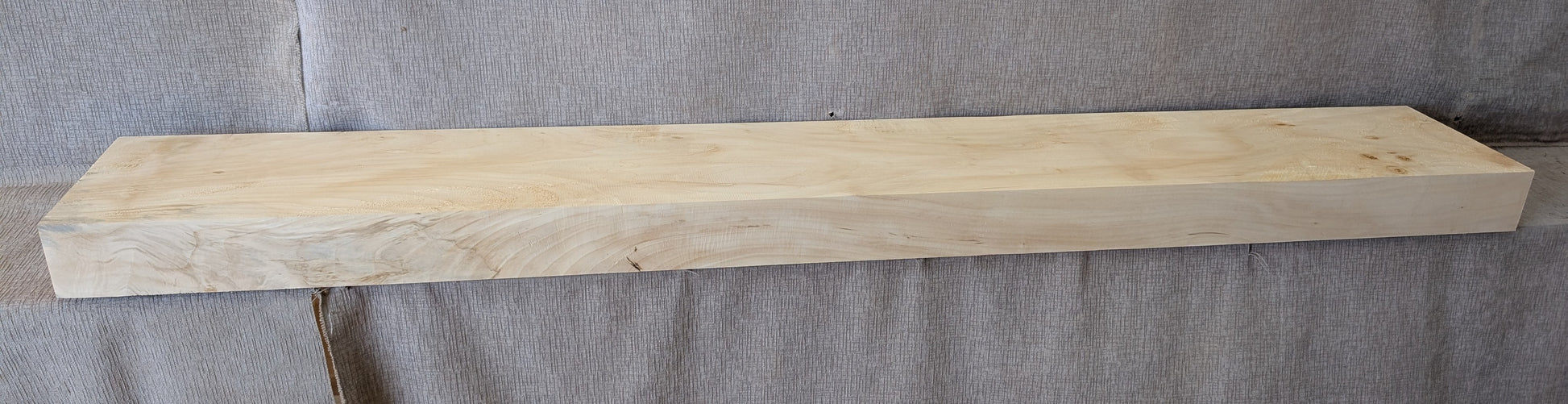 Medium reddish brown color on face that shows figured grain with small crack. Medium reddish brown color on top and bottom with knots.