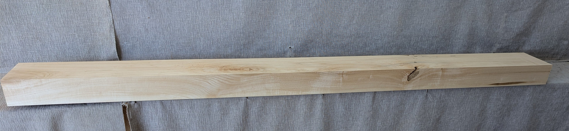 Medium reddish brown color on face that shows variable grain and knots. Medium reddish brown color on top and bottom with knots and wormy character.