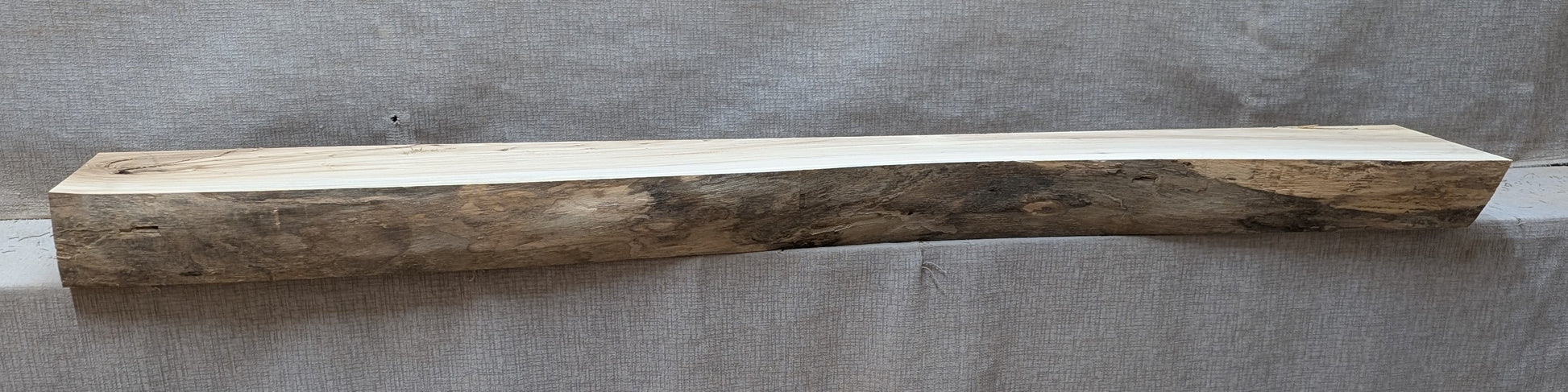 Mixed light brown and gray color on irregular face which shows machine scars. Mixed light brown and yellow color on top and bottom with knots and splits.