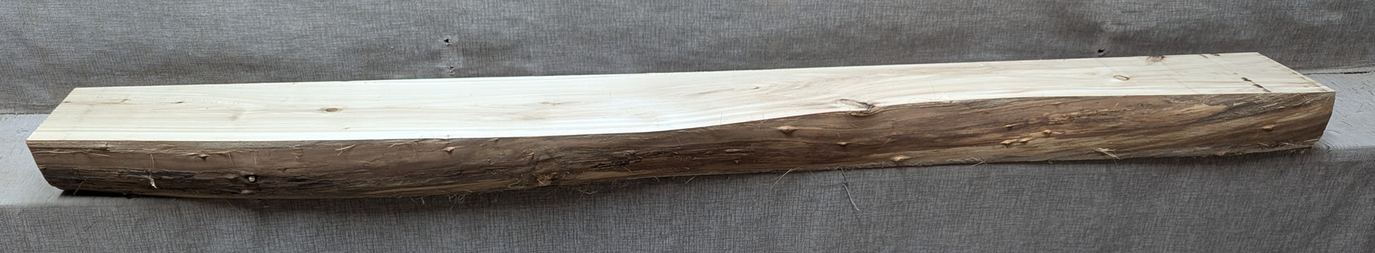 Mixed weathered light and medium brown color on slightly irregular shaped face which shows branch tips and bark remnants. Mixed reddish tan color on top and bottom with knots and splits.