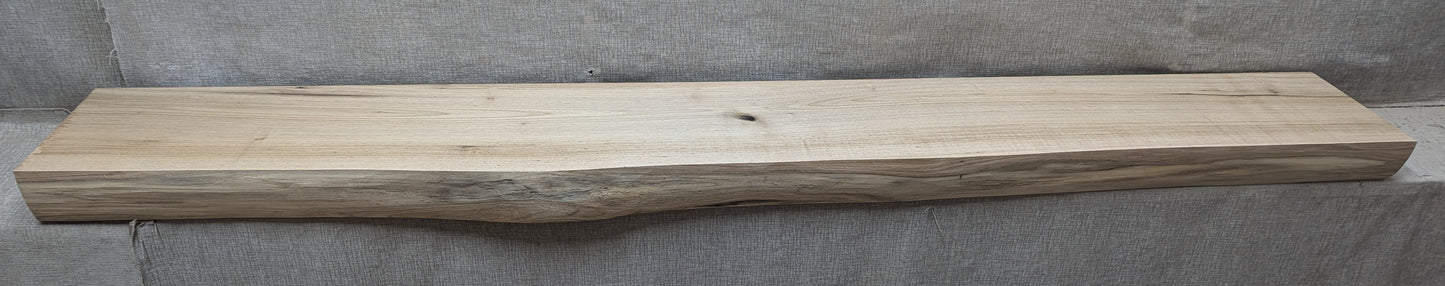 Mixed light and medium brown color on slightly irregular shaped face that shows splits and wormy character. Mixed medium brown color on top and bottom with knots, splits, and wormy character.