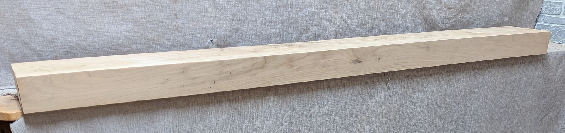 Medium reddish brown color on face that shows variable grain and wormy character. Medium reddish brown color on top and bottom with knots, splits, and wormy character.
