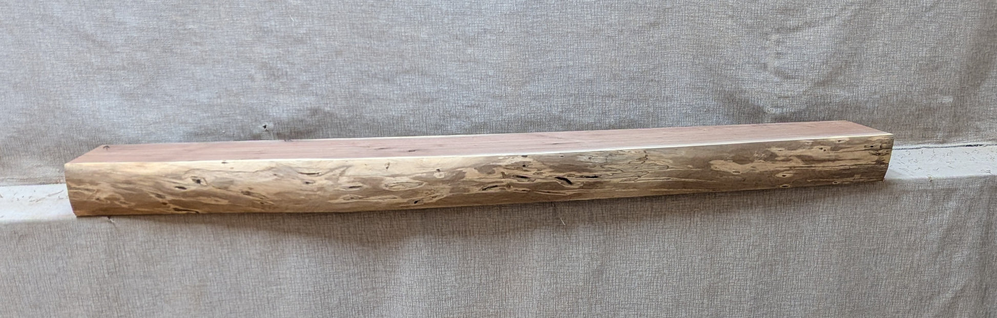 Mixed medium brown color on a regular shaped face which shows wormy character and splits. Mixed dark and light brown color on top and bottom with knots and splits.