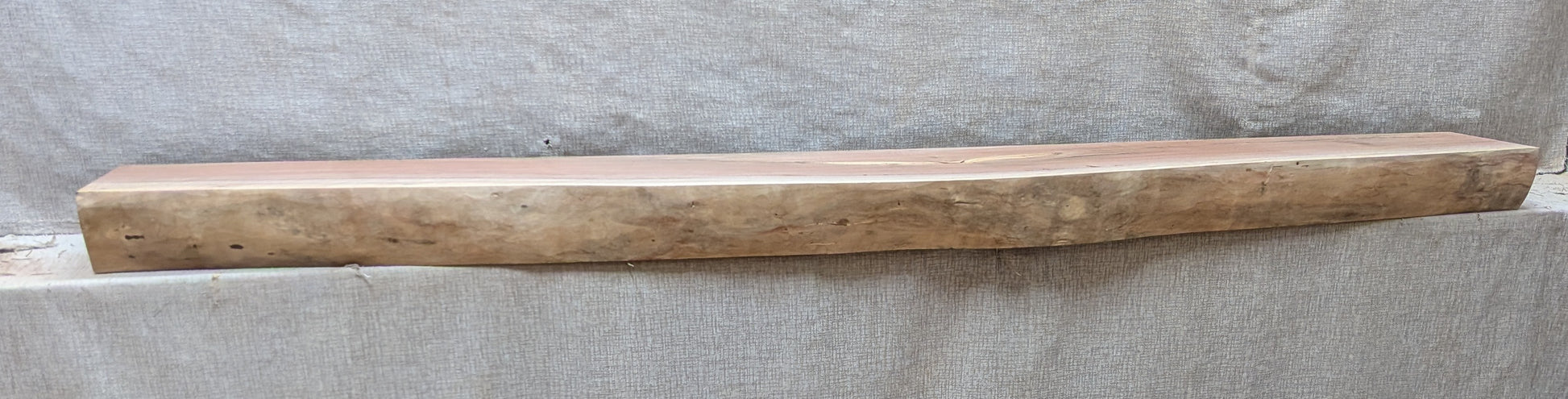Mixed medium brown color on an irregular shaped face which shows slight wormy character. Mixed dark and light brown color on top and bottom with knots and splits.