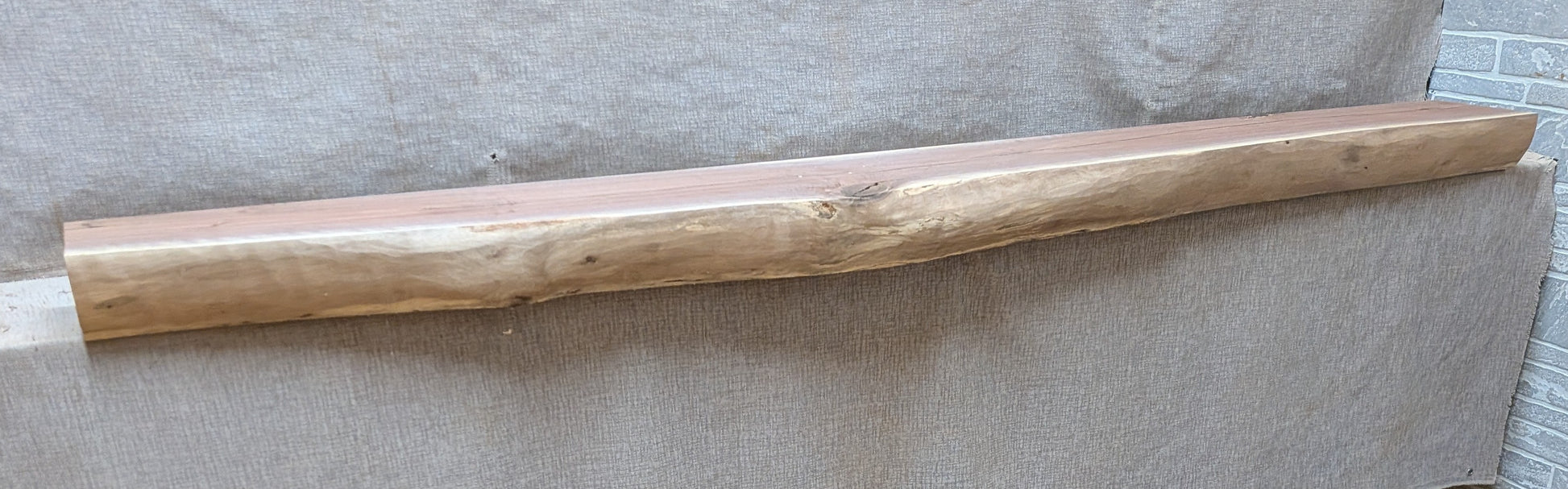Mixed medium brown color on an irregular shaped face. Mixed dark and light brown color on top and bottom with knots and splits.