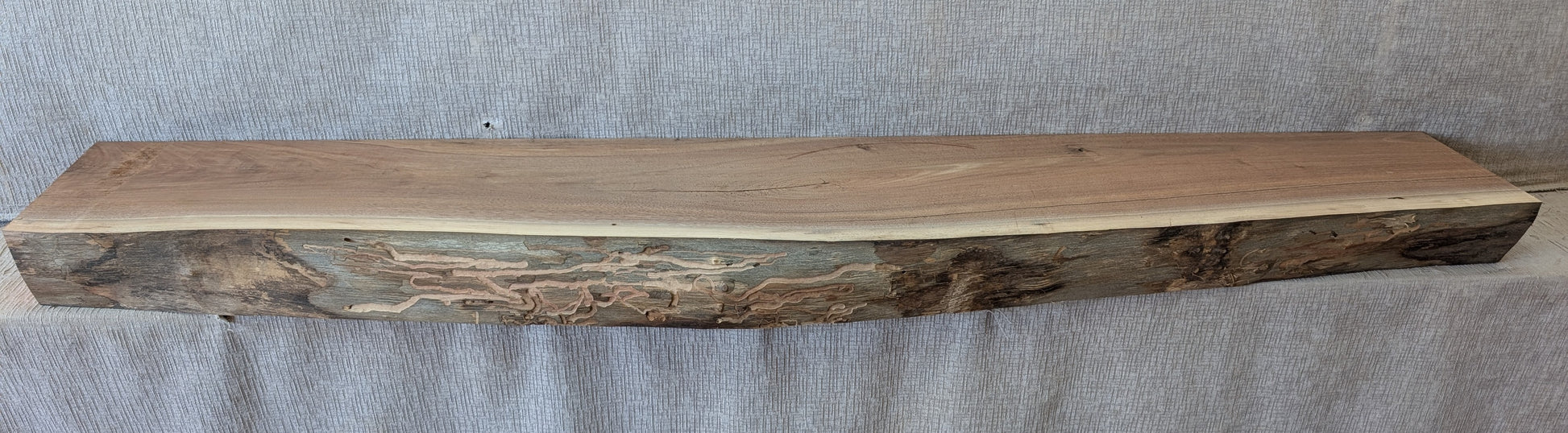 Mixed brown colors on irregular shaped face which shows wormy character. Mixed dark and light brown color on top and bottom with knots and splits.
