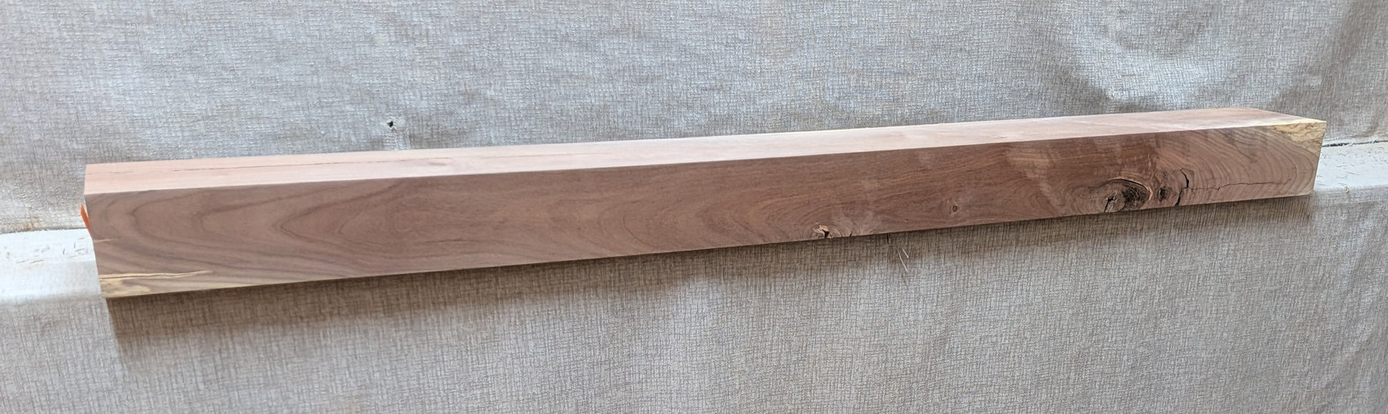 Mixed dark and light brown color on face which shows variable grain with knots and splits. Mostly dark brown color on top and bottom with knots and splits.