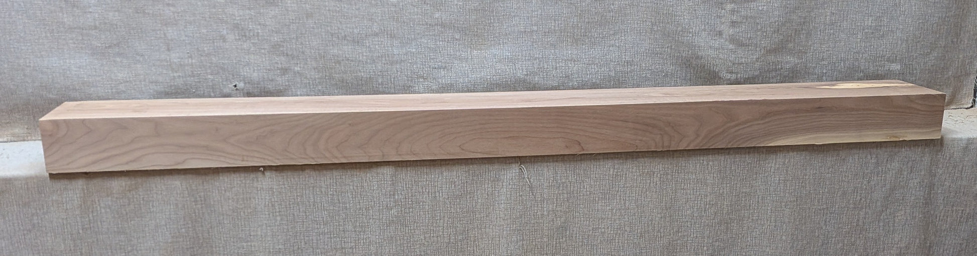 Mixed dark and light brown color on face which shows variable grain. Mostly dark brown color on top and bottom with knots and splits.